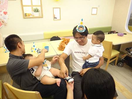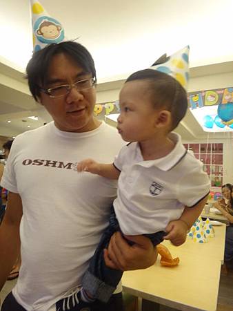 班爸也感受氣氛和小班一起帶生日快樂帽