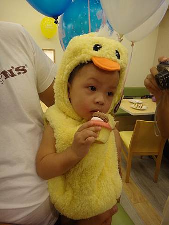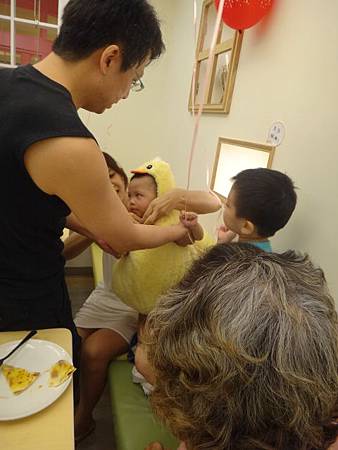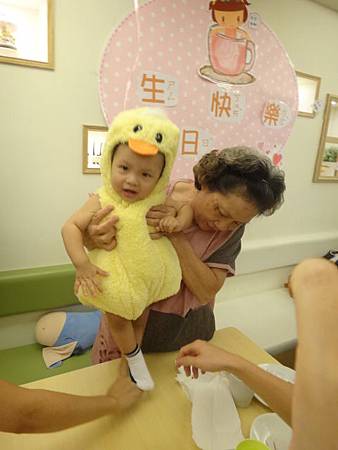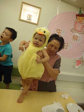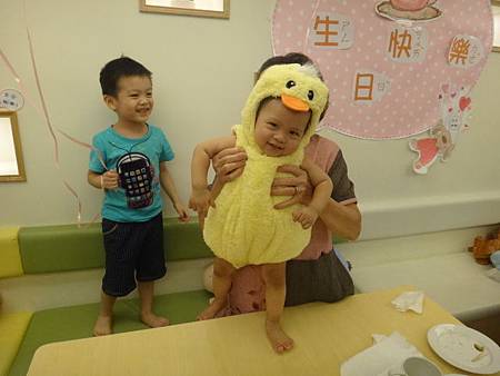 於是小班也換上壽星黃毛小雞裝慶祝自己破蛋之日