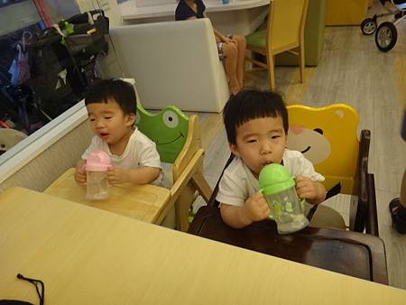 一個正要喝水,一個喝水中~那表情真囧