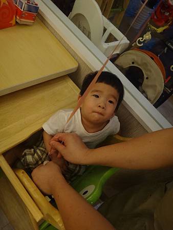 後來店長叔叔索性把氣球綁在囧弟手上