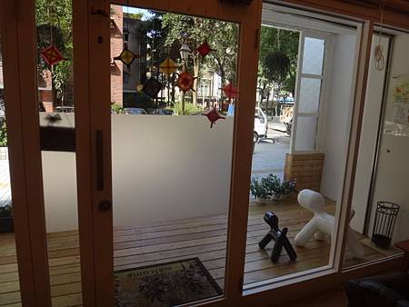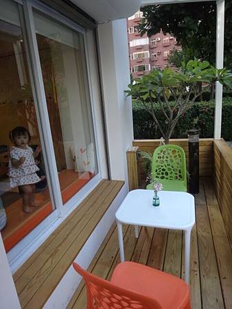 從遊戲區落地窗拍得室外爸爸透氣座位