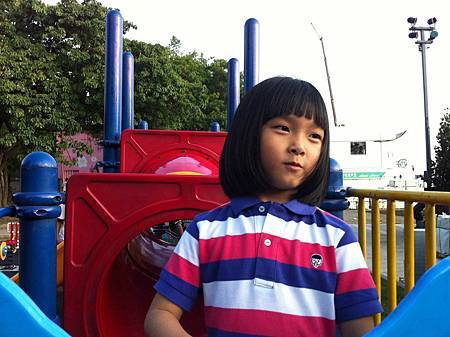 溜滑梯的交換條件就是要把飯飯吃完囉