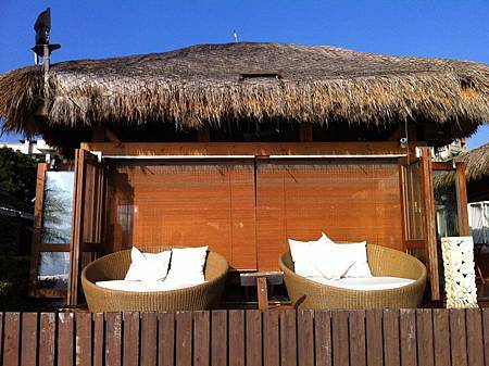 茅草屋頂的周圍不定時會噴灑水氣降溫
