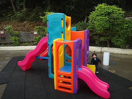 因為滑梯都是水珠的關係所以我硬將囧們從室外拉到室內