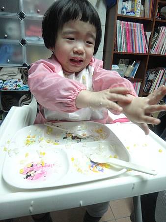 只要手稍微一點濕濕或沾食物就會要我幫他擦乾淨