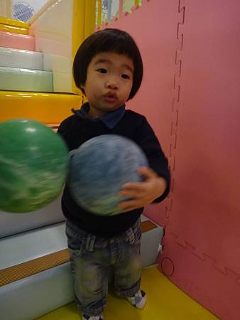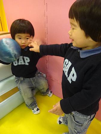 囧弟:"媽咪~~哥哥都不借我球球啦~~~"