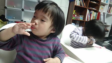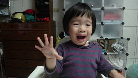 可能要長牙的緣故~最近都一次把五隻或四隻手指頭往嘴裡塞