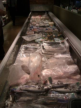 看完新鮮漁獲區旁邊有好幾個冷凍櫃裝有冷凍漁獲