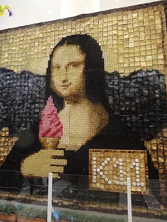 是由真的可以吃的吐司馬賽克拼成的蒙娜麗莎吃冰淇淋呦!!