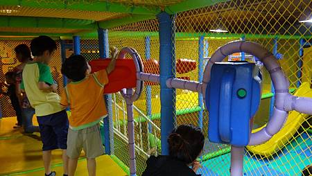 後來都還是我們聽到哭聲才把小孩從滑梯中間拉出來或引導出來的