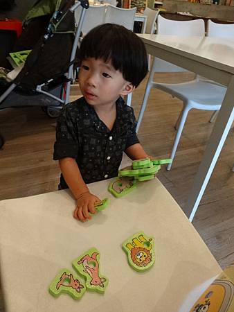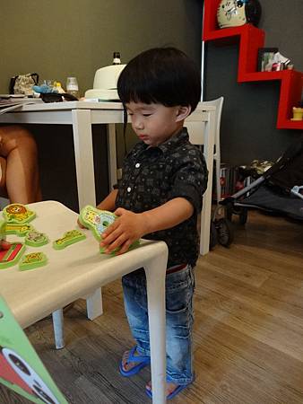 午睡起來的囧弟在玩巧虎動物園