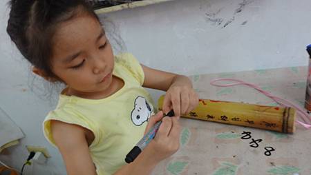 但卻無法雙手都拿到竹筒還敲擊竹筒 (真的很高)