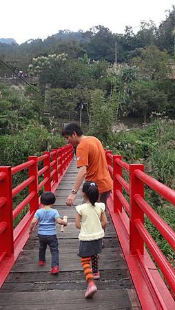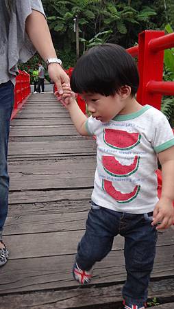 帶小小孩過橋時 大人還是牽著寶貝的手比較安全呦~~