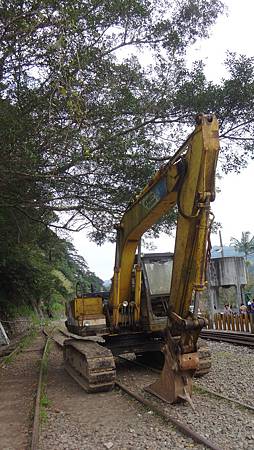 沿著鐵軌走去還可以看到停在鐵軌上的挖土機