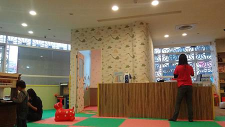 坐在剛剛的小鯨魚沙發上面可以拍到櫃檯和哺乳室